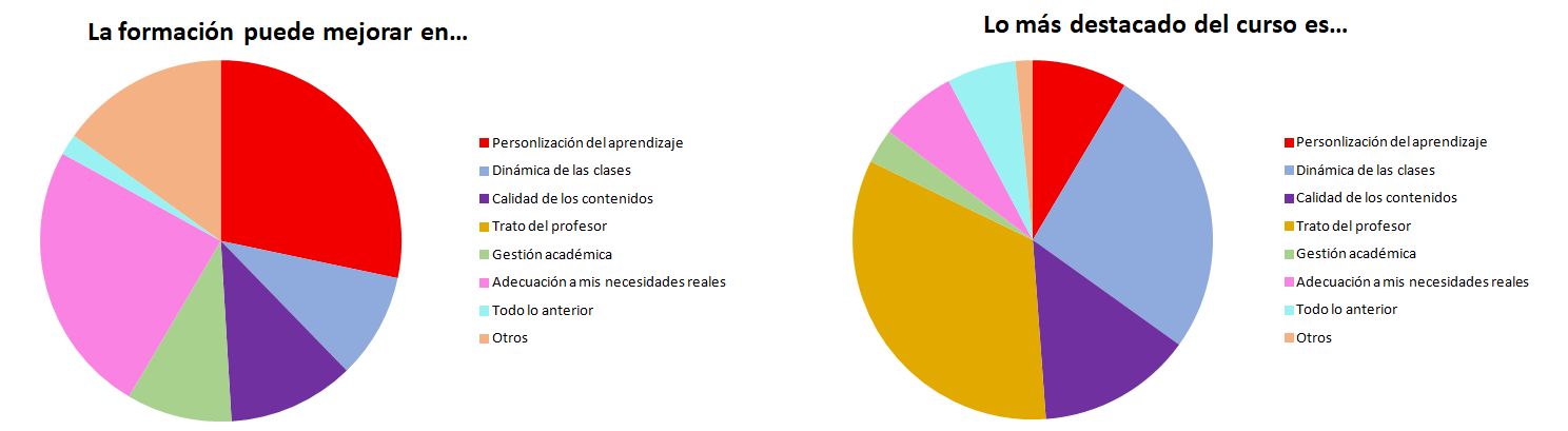 Eso sí, no está todo el pescado vendido. Según nuestros alumnos aún podemos lograr mejores resultados. ¿Cómo? Trabajando más sobre la personalización de los cursos.